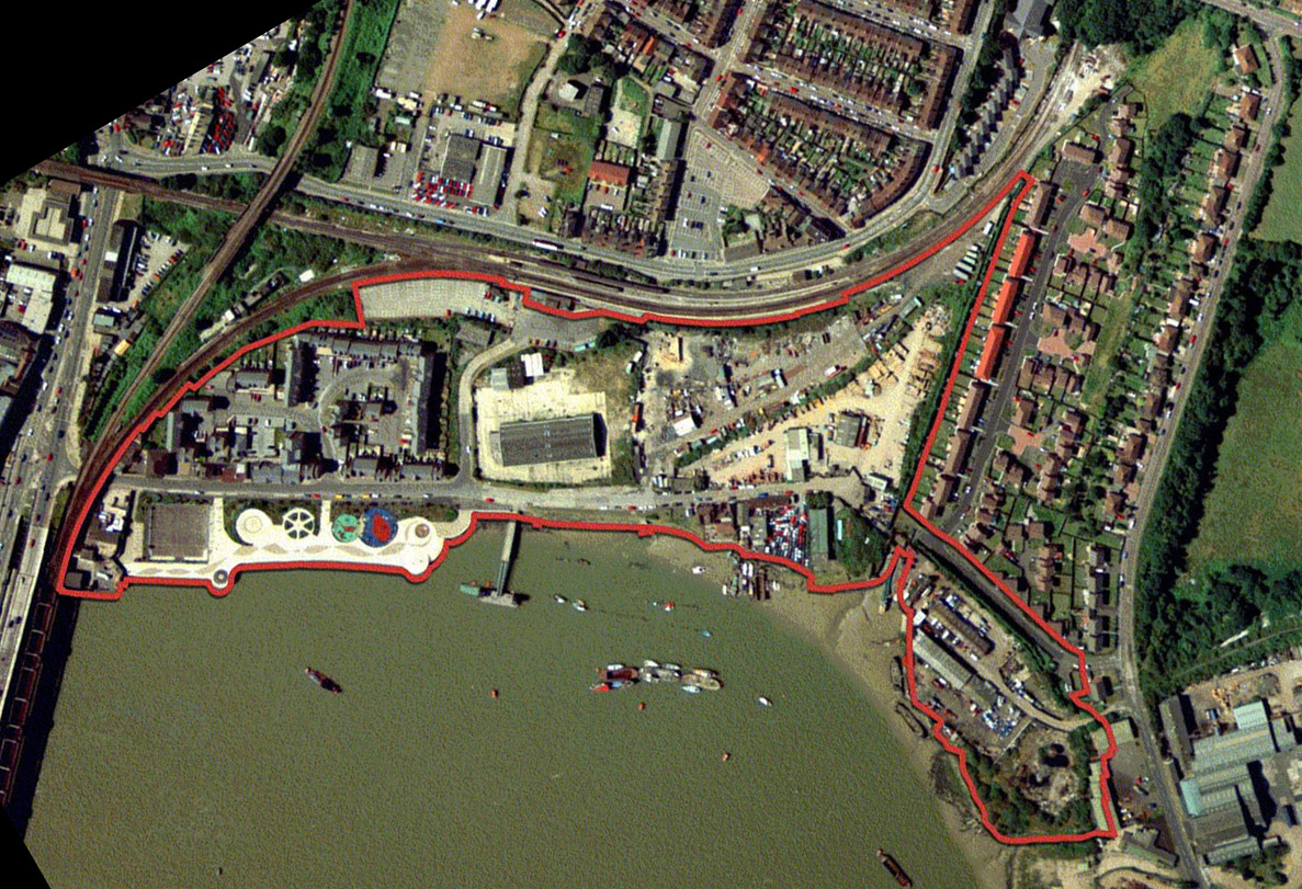 Strood is a town in Kent, on the river Medway, just across from the ancient town of Rochester. A neighborhood on the north bank of the river, locally known as Strood Riverside, is about 7 hectares. It consists, at present, of broken down industry, a few houses, an old and very nice pub, Strood railway station, and a number of small businesses, and some poorly built social housing from the 1950s. The area has been earmarked for redevelopment by Medway council.